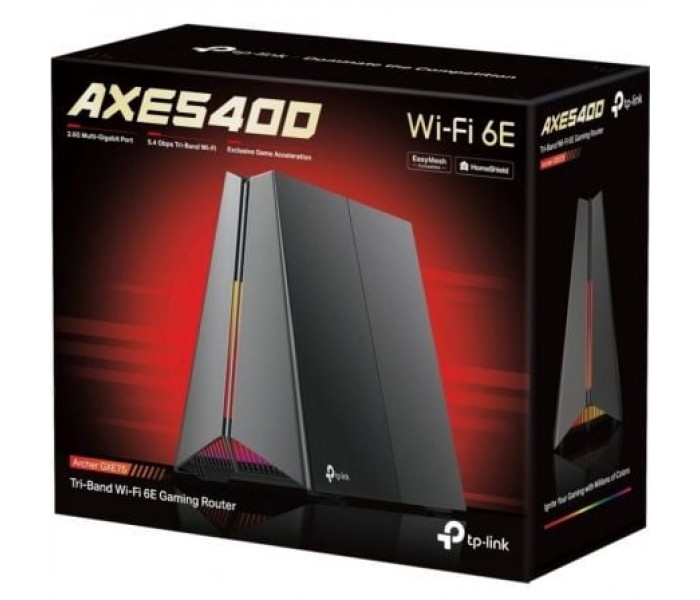 TP-Link Archer GXE75. Tipo de conexión WAN: RJ-45. Banda Wi-Fi: Tribanda (2.4 GHz / 5 GHz / 6 GHz), Estándar Wi-Fi: Wi-Fi 6E (802.11ax), Wi-Fi estándares: Wi-Fi 6E (802.11ax). Tipo de interfaz Ethernet LAN: 2.5 Gigabit Ethernet, Ethernet LAN, velocidad de transferencia de datos: 1000,2500 Mbit/s, Estándares de red: IEEE 802.11ax. Algoritmos de seguridad soportados: WPA, WPA-Enterprise, WPA2, WPA2-Enterprise, WPA3, NAT, funcionalidad: ? Port Forwarding ? Port Triggering ? DMZ ? UPnP. Tipo de producto: Enrutador de escritorio/poste