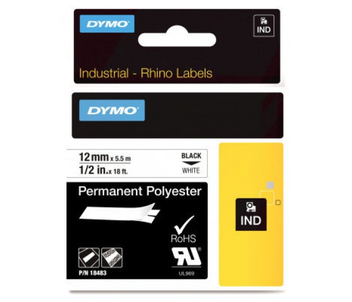 CINTA ROTULADORA RHINOPRO POLISTER 12MMX5,5M NEGRO/BLANCO DYMO 18483