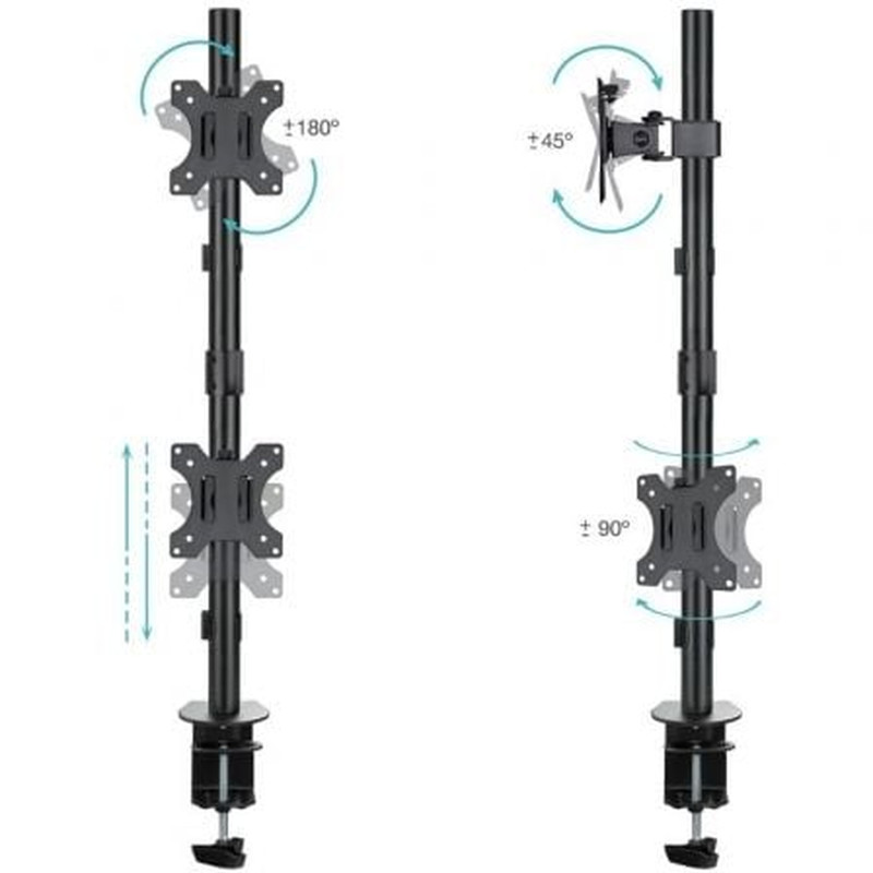 Soporte de Mesa, Giratorio e Inclinable, Vertical, para 2 Pantallas 13”-32”, NegroEspecificaciones