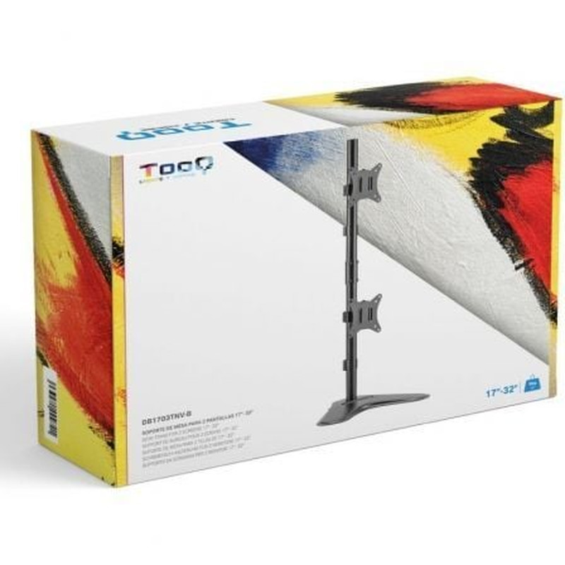 Soporte de Mesa para 2 Monitores TooQ DB1533TNR-B/ Giratorio/ Inclinable/ hasta 9kgEspecificaciones. . Pantallas soportadas: 17""-32"". Compatible con VESA: 75x75 y 100x100. Peso soportado de 2 pantallas: Mínimo 2 kg. Máximo 9 kg por cada brazo. Brazo regulable con mecanismo asistido por muelles. án..