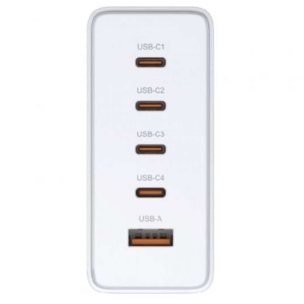- Cinco puertos USB-C/USB-A: Cuenta con 4 puertos USB-C y 1 puerto USB-A para cargar 5 dispositivos simultáneamente