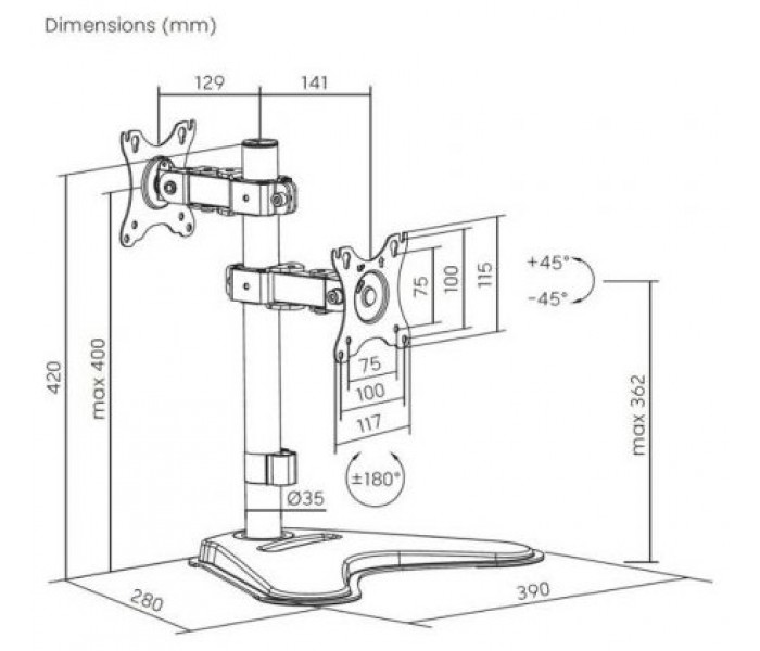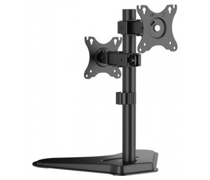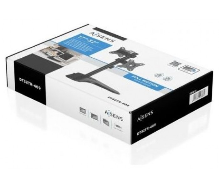 - Tipo: Soporte de mesa inclinable y rotable para 2 monitores/POS (1 pivote, 2 brazos) de 17”-32”