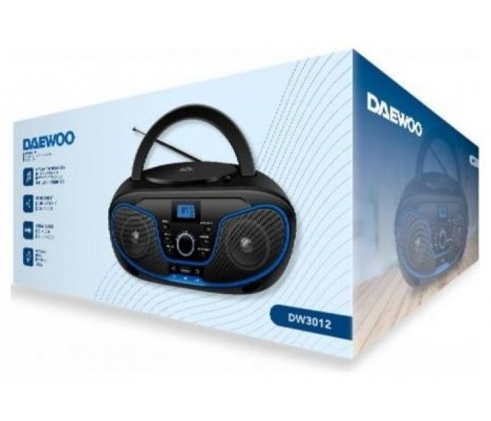 Daewoo DW3012 es una radio CD/FM tipo boombox con conectividad Bluetooth, USB, AUX y salida de auriculares, que combina 2×2 W de potencia en altavoces integrados con ecualizador de 5 modos y pantalla LCD. Funciona a corriente AC o con 4 pilas C (LR14) para uso portátil.