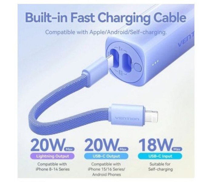 Manténgase cargado con estilo con el Vention Gradient Pocket Recharge , un banco de energía compacto y elegante diseñado para mantener sus dispositivos cargados durante todo el día. Este banco de energía, que combina una estética vibrante con tecnología de vanguardia, es su compañero perfecto para cargar su dispositivo mientras viaja.