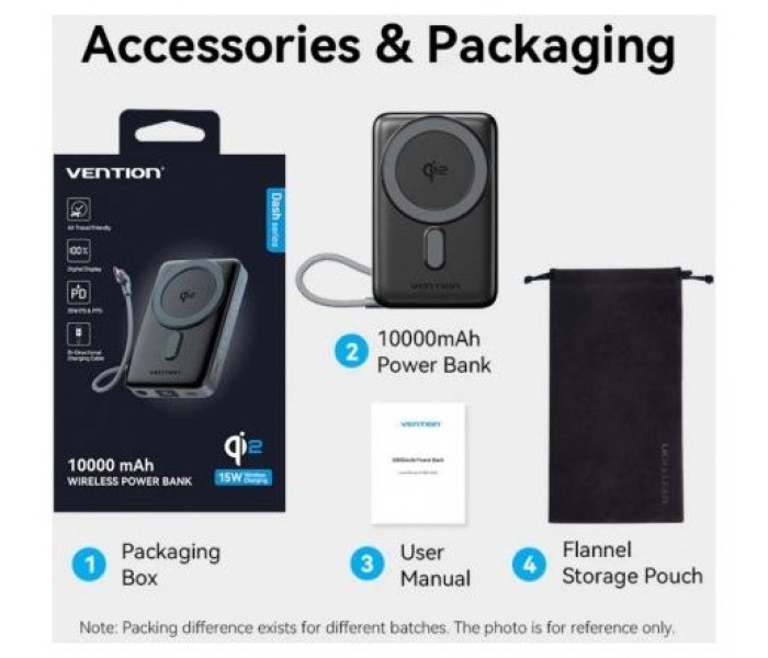 Powerbank 10000mAh Vention FHOB0/ 22.5W/ Negra/ Incluye Cable USB Tipo-C y Lightning Especificaciones 10.000 mAh Interfaz: USB-A / USB-C / Micro-USB/ Lightning Capacidad batería: 10000mAh (3.7V/37Wh) Input (USB-C): 5V = 3A; 9V = 2A Input (Micro-USB): 5V = 2A; 9V = 2A Output (USB..