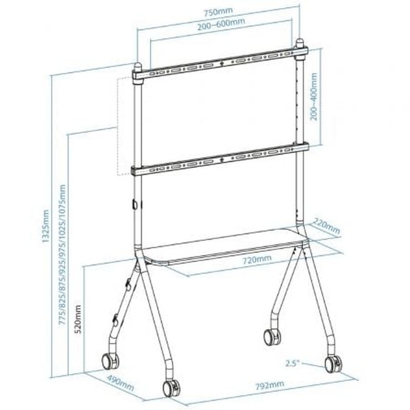 Soporte de Suelo Inclinable/ Ajustable con Ruedas TooQ FS20300M-B para TV de 60-100"/ hasta 100kg60"" A 100""/BANDEJA PARA DVD/ VESA MAX. 1000x600/CARGA MAXIMA 100KGS/ REGULABLE EN ALTURA/ INCLINABLEEspecificaciones:. . Pantallas soportadas: 60""-100"". Compatible con VESA: Máximo 1000x600. Mínimo 2..