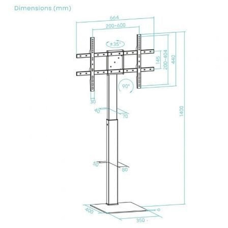 Soporte de Suelo Inclinable con Ruedas TooQ FS1184M-B para TV de 35-70"/ hasta 70kgFS1184M-B“COMETA” Soporte de Suelo con Ruedas con Regulación de Altura para Pantallas 37"- 70", RotaciónEspecificacionesPantallas soportadas: 37"-70"Compatible con VESA: Máximo 600x400. Mínimo 200x200Peso máximo sopor..