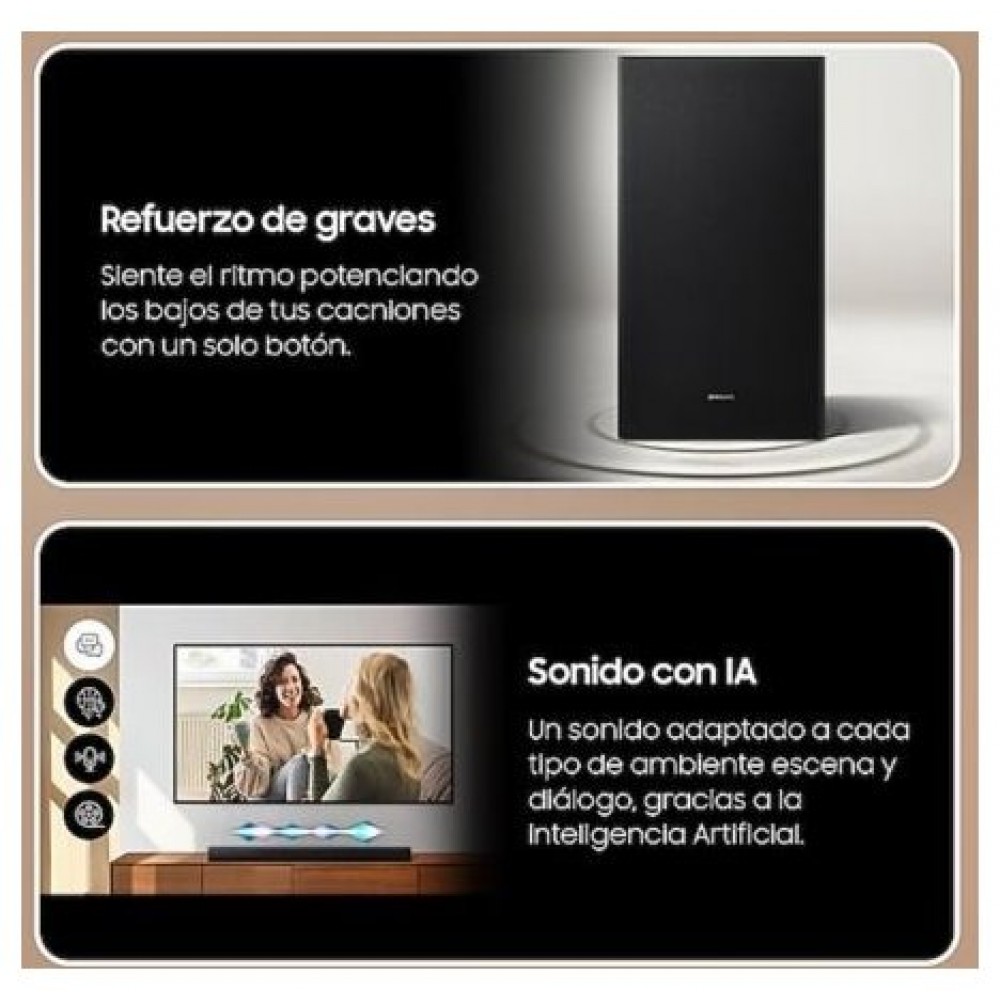 Disfruta de diálogos claros y nítidos con la barra de sonido Samsung gracias al altavoz central integrado, que realza las voces.