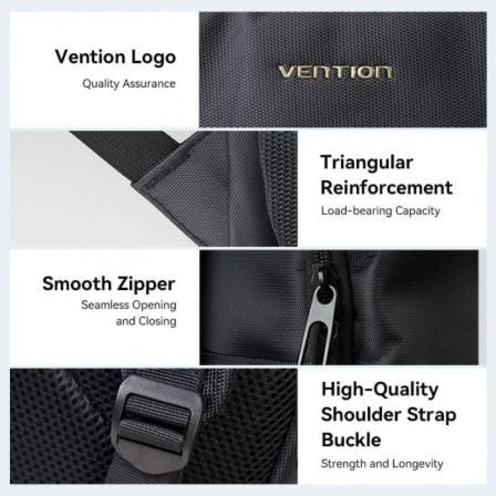 Experimente la comodidad y conveniencia de la mochila para computadora portátil Vention. Su diseño espacioso, construcción liviana y materiales duraderos la convierten en la opción perfecta para el uso diario.