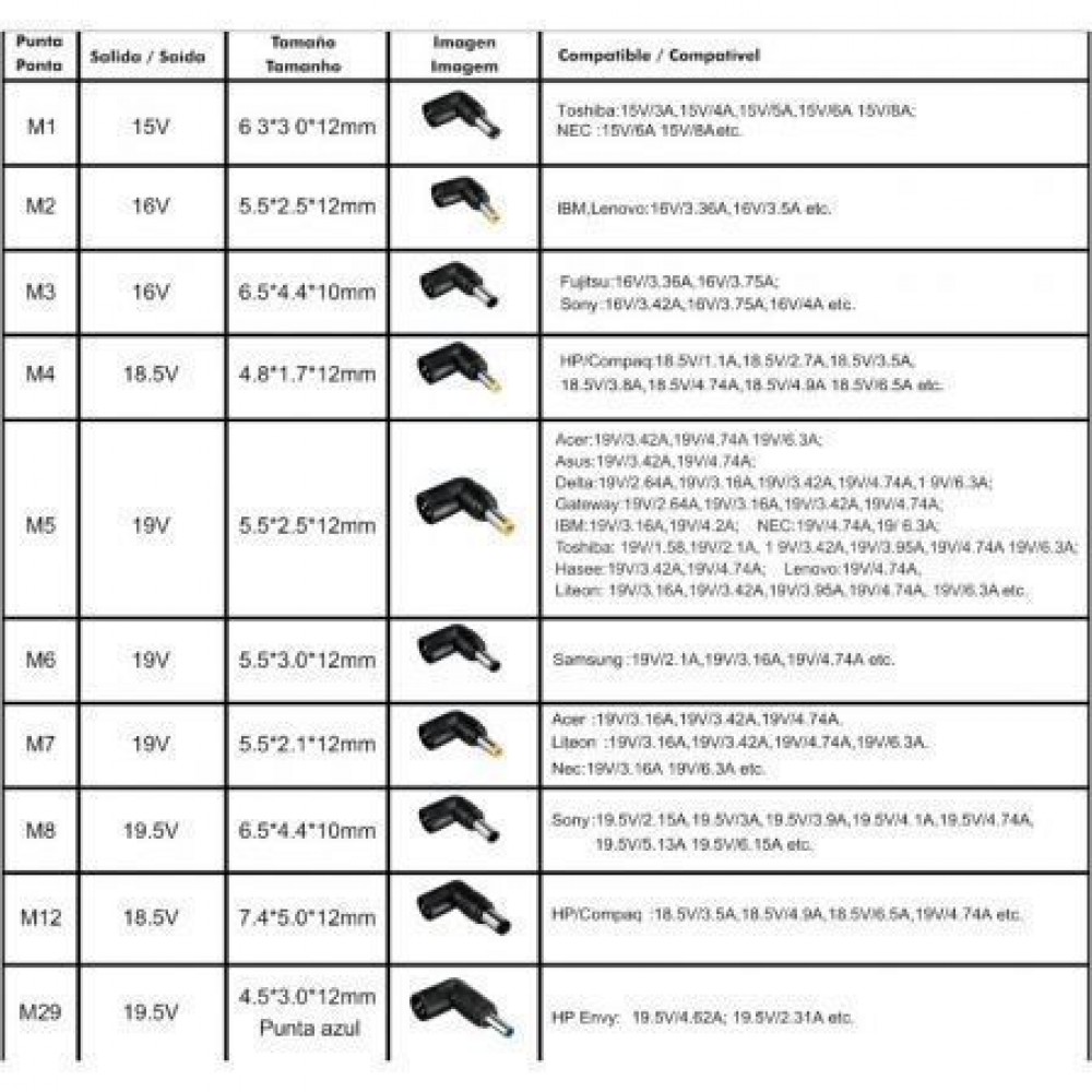 la solución perfecta con su Set Cargador Notebook universal, compatible con gran número de marcas y modelos de ordenadores portátiles.