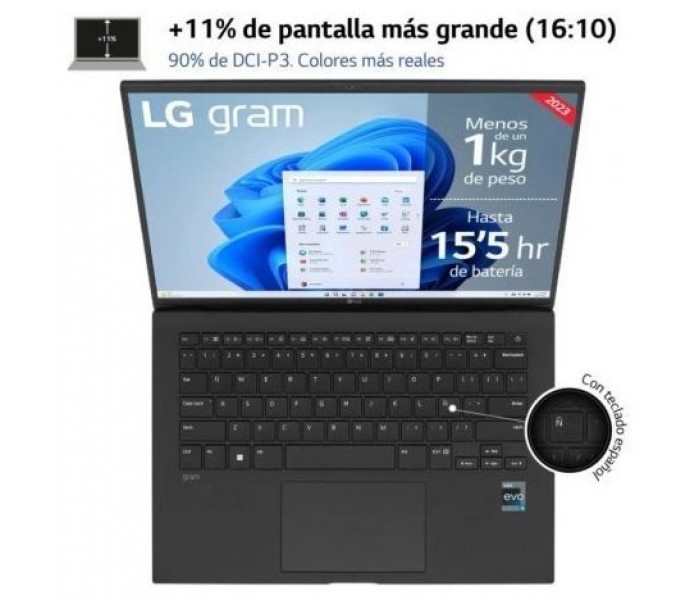 LG gram ha sido certificado por Intel en la plataforma EvoTM al incorporar los nuevos Procesadores de 13a generación y la nueva Gráfica Iris Xe para trabajar con contenido 4K UHD con máxima fluidez. Incorpora una memoria RAM de última generación LPDDR5, disco duro SSD NVMe de 4ª generación con doble ranura para ampliar; permitiendo añadir recursos a tu equipo cuando lo necesites. En cuanto a conectividad, se ha incluido el máximo de puertos posibles. Entre dichas conexiones, cuenta con un USB-C con ThunderboltTM 4 incorporado, que permite una velocidad de transferencia de datos de 40Gbps, carga de dispositivos y video 5K, todo con un solo cable; garantizando su compatibilidad en el tiempo con diversos periféricos. El LG gram es uno de los portátiles más silenciosos y eficientes térmicamente del mercado, gracias a la optimización del sistema de ventilación, que permite mover un 50% más de caudal de aire que generaciones anteriores, con un nivel de ruido de solo 25dB