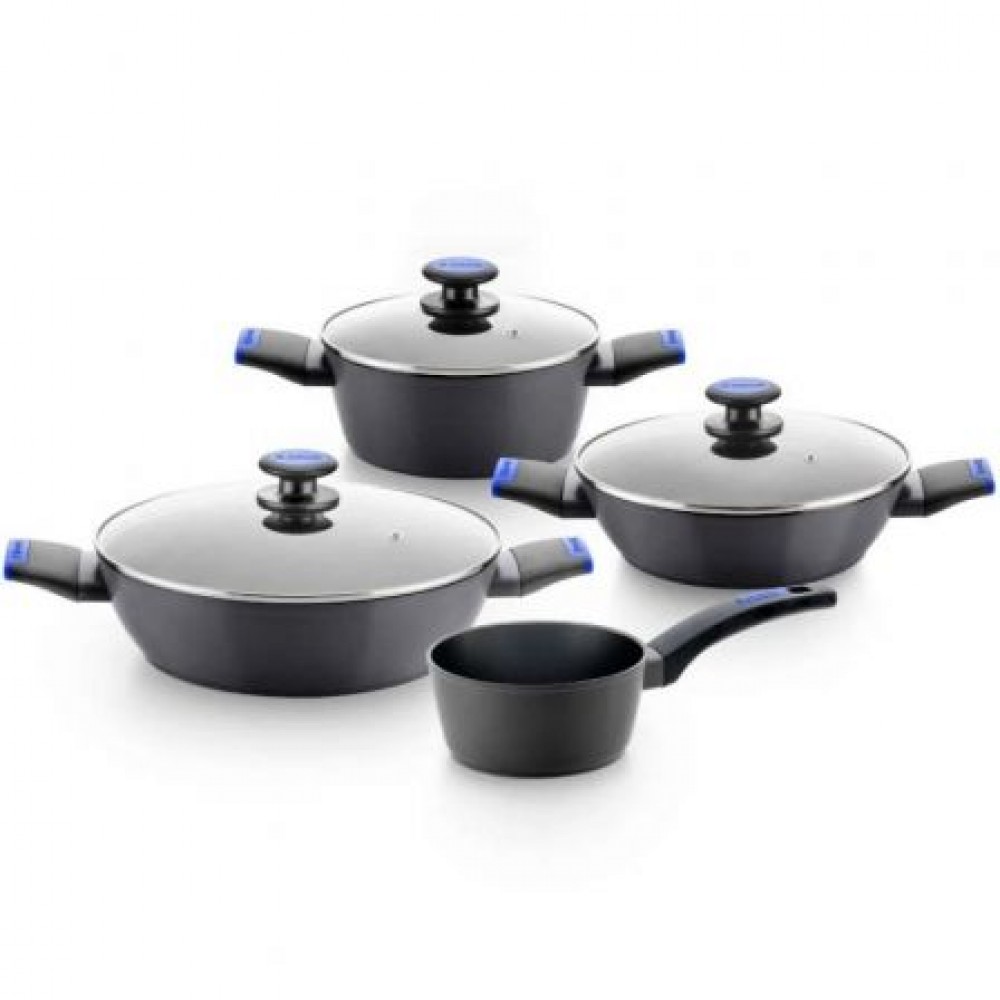 Batería de cocina MONIX Martin Berasategui es el conjunto de menaje de cocina más completo para las mejores recetas. Contiene las piezas esenciales para una cocina: una cacerola alta de 20 cm con tapa de cristal, una cacerola baja de 24 cm con tapa de cristal, una cacerola baja de 28 cm con tapa de cristal y un cazo de 16 cm.