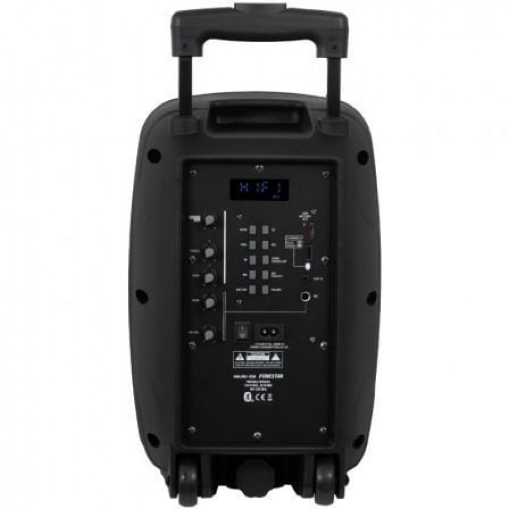 Altavoz portátil con reproductor Bluetooth/USB/microSD/FM/LINE y 1 micrófono de mano inalámbrico UHF.