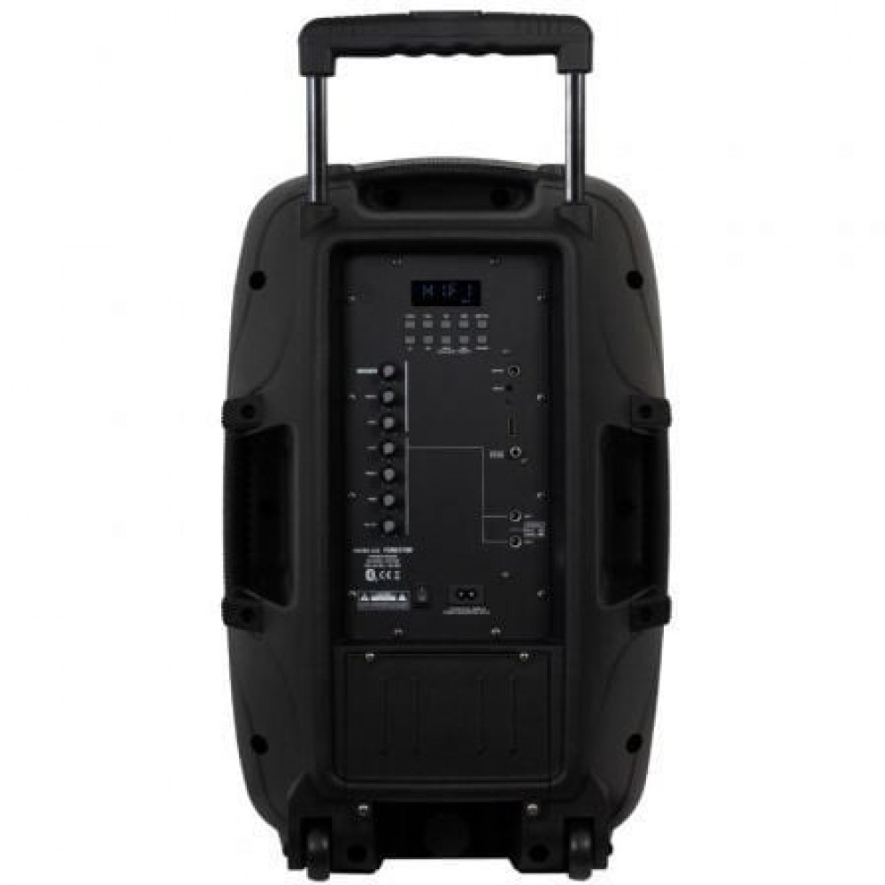 Este altavoz te acompañará en todas tus fiestas, actuaciones o charlas en directo ya que en un tamaño reducido proporciona multitud de opciones de reproducción, amplificador de 250 W máximo, micrófonos (de cable e inalámbrico) y batería de litio.