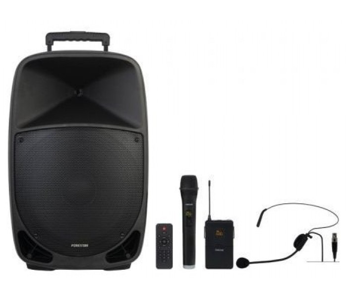 Altavoz portátil con reproductor Bluetooth/USB/microSD/FM/LINE y 2 micrófonos inalámbricos UHF (1 de mano y 1 de cabeza).