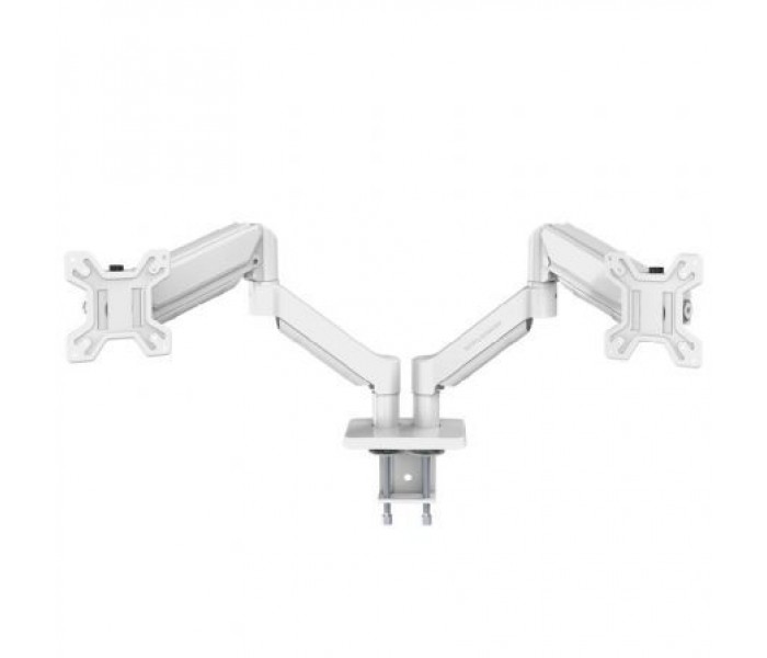 Compatible con 2× monitores de 13” a 32”, soporta hasta 10 kg por brazo y utiliza los estándares VESA 75x75 y 100x100, asegurando una instalación rápida, universal y fiable para la mayoría de pantallas del mercado.