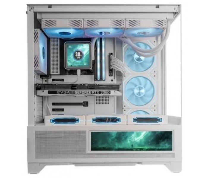 El panel inferior FULL MESH maximiza la refrigeración desde la base del equipo, optimizando el flujo interno y mejorando la eficiencia térmica de tu configuración. Un diseño pensado para reforzar la ventilación sin sacrificar la estética moderna de la caja.
