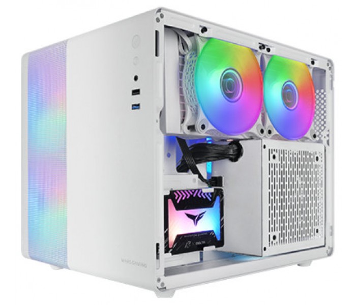 Caja Gaming Semitorre Mars Gaming MC-GEO/ BlancaCon panel frontal Mesh geométrico, 4 ventiladores FRGB Rainbow de 120mm de serie, ventana lateral de cristal templado, soporte para refrigeración líquida de hasta 360mm y un diseño de doble cámara, la caja de ordenador MC-GEO fusiona potencia y estilo ..