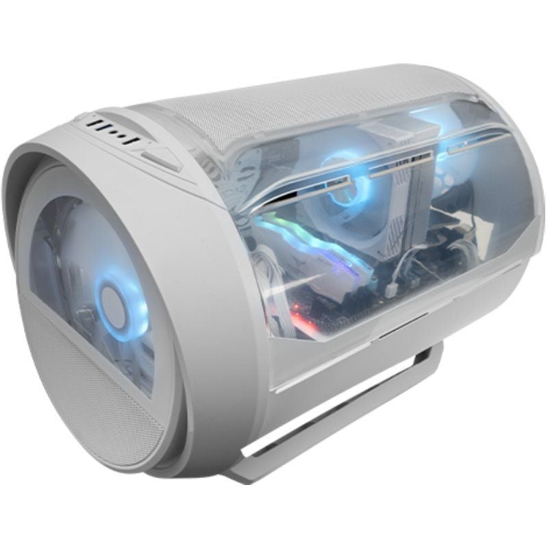 La MC-CYLON rompe con el diseño tradicional de cajas gaming. Su diseño cilíndrico, inspirado en turbinas futuristas, redefine las reglas del gaming. Es una declaración visual de poder y personalidad para creadores, jugadores y entusiastas que buscan algo más que una torre: una pieza central con identidad propia.