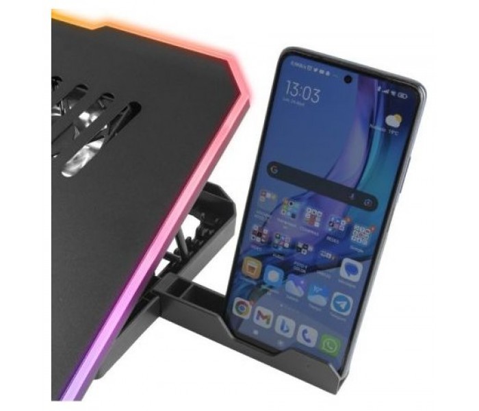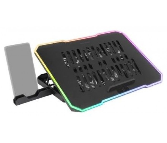 Refrigera tu portátil con estilo y eficiencia con la base MNBC7. Función stand con 6 posiciones regulables y smartphone holder. Diseñada con una estructura de acero resistente, rejilla de aluminio y ABS, esta base proporciona un soporte perfecto para portátiles de hasta 16". Con su avanzado sistema de refrigeración compuesto por 6 potentes ventiladores, podrás proteger tu equipo del sobrecalentamiento mientras disfrutas de tus sesiones gaming o trabajo intenso.POTENCIA Y PORTABILIDAD SIN LÍMITES