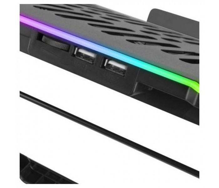 Con su innovador sistema de 6 ventiladores equipados con un práctico knob de control de velocidad, podrás adaptar la potencia de enfriamiento según tus necesidades. Ajusta la velocidad de los ventiladores para obtener un flujo de aire óptimo y mantener tu portátil en temperaturas ideales, incluso durante las sesiones de trabajo o juegos más intensos.CONECTIVIDAD TOTAL