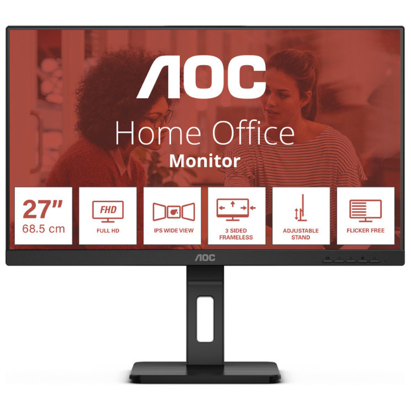 Monitor IPS FHD de 24"" con funciones esenciales para aprovechar al máximo las largas horas de trabajo. Las tecnologías Adaptive Sync, Flicker-Free, Low Blue Light y todas las funciones ergonómicas le ayudarán a trabajar y estudiar.. . Características principales:. . Pie con altura ajustable. Nos importa su bienestar. Por eso, este monitor ofrece opciones de ajuste de altura, que le ayudará a encontrar la postura perfecta mientras trabaja, juega o ve vídeos. Adaptar su monitor AOC a sus necesidades no sólo le ayuda a reducir la fatiga y a mantenerse sano. Al final, le permite a usted y a su equipo conseguir mejores resultados en lo que sea que esté haciendo.. . Panel IPS. El panel IPS garantiza una excelente experiencia de visión con colores realistas, fieles y brillantes. Los colores muestran un aspecto coherente desde cualquier ángulo que se mire a la pantalla.. . Adaptive sync. La sincronización adaptativa hace coincidir la tasa de refresco vertical de tu monitor con la velocidad de fotogramas de la GPU para eliminar el stuttering, el tearing y los temblores, y que la experiencia de juego y de ocio sea aún más fluida. Esta función también es útil para disfrutar de vídeos y otros medios de entretenimiento de una forma más fluida.. . 75Hz Tasa de Refresco. ¡Consigue ventaja extra! Con una frecuencia de actualización de 75 Hz, el panel de visualización traza 75 fotogramas por segundo. La frecuencia de actualización de 75 Hz es un 25 % más rápida que la ofrecida en la mayoría de las pantallas de iniciación de 60 Hz, pero sigue siendo asequible y aporta esos fotogramas extra que los jugadores necesitan para batir a sus oponentes.. . HDMI. La HDMI (interfaz multimedia de alta definición) se admite en consolas de videojuegos actuales, GPU actuales y decodificadores, que admitan el sistema HDCP de protección del contenido digital. Las versiones 1.3-1.4b de HDMI admiten una frecuencia de actualización de hasta 144 Hz y 1080p o 75 Hz y 1440p, mientras que las versiones 2.0-2.0b de HDMI admiten 240 Hz y 1080p, 144 Hz y 1440p, así como 60 Hz y 2160p (4 K).. . Puerto de pantalla. DisplayPort ofrece una transmisión digital ultrarrápida de audio y vídeo sin pérdida de calidad o retardos de entrada. Conecta con rapidez y facilidad una gama de dispositivos a tu pantalla, incluido tu ordenador, portátil, reproductor de medios, videoconsola y mucho más. Es perfecto para profesionales y particulares muy exigentes.. . Flicker Free. La tecnología Flicker-Free de AOC utiliza un panel de luz de fondo de corriente continua (corriente CC), que reduce los niveles de luz parpadeante. Al minimizar la fatiga visual y el cansancio, ¡prepárate para disfrutar de esas largas e intensas sesiones de juego con increíble comodidad!. . Low Blue Light. La luz azul de onda corta puede ocasionar lesiones en la vista. La tecnología Anti Blue Light de AOC bloquea los rayos de luz azul dañinos sin alterar el color de la pantalla. Otros métodos de reducción de la luz azul utilizan filtros o ajustes que oscurecen ligeramente o dan un tono amarillento a las imágenes.. . Especificaciones:. . TAMAñO DE LA PANTALLA (PULGADAS): 23.8. TAMAñO PANTALLA (CM): 60.5. PLANO / CURVO: Plano. RADIO DE CURVATURA: Flat. DUREZA DE LA PANTALLA: 3H. TRATAMIENTO DEL PANEL: Antibrillo (AG). SEPARACIóN DE LOS PíXELES (MM): 0.2745. PíXELES POR PULGADA: 93. RESOLUCIóN DEL PANEL: 1920x1080. NOMBRE DE LA RESOLUCIóN: FHD. RELACIóN DE ASPECTO: 16:9. TIPO DE PANEL: IPS. TIPO DE RETROILUMINACIóN: WLED. MAX TASA DE REFRESCO: 75 Hz. TIEMPO DE RESPUESTA GTG: 4 ms. RELACIóN DE CONTRASTE ESTáTICO: 1000:1. RELACIóN DE CONTRASTE DINáMICO: 20M:1. áNGULO DE VISIóN (CR10): 178/178. COLORES DE LA PANTALLA: 16.7M (8bits). . Funciones de vídeo. . TECNOLOGíA DE SINCRONIZACIóN (VRR): Adaptive Sync. FRECUENCIA DE SEñAL DIGITAL VERTICAL: 48-75Hz Hz. FRECUENCIA DE SEñAL DIGITAL HORIZONTAL: 30k-85kHz. HDR (ALTO RANGO DINáMICO): HDR Mode. FLICKER-FREE (SIN PARPADEO): Flicker Free. TECNOLOGíA BLUE LIGHT: Luz azul baja. KVM: No. . Información armario. . TIPO DE BISEL (FRONTAL): Sin marco en 3 lados. COLOR DEL BISEL (FRONTAL): Negro. ACABADO DEL BISEL (FRONTAL): Textura. COLOR DEL ARMARIO (PARTE TRASERA): Negro. ACABADO DEL ARMARIO (PARTE TRASERA): Textura. PIE EXTRAíBLE: Sí. ALTAVOCES: Sí. POTENCIA DEL ALTAVOZ: 2 W x 2. BLOQUEO KENSINGTON: Sí. SOPORTE DE PARED VESA: 100x100. . Información ergonómica. . INCLINACIóN: -5~35º. AJUSTE DE ALTURA (MM): 150mm. ROTACIóN: 180º. PIVOTACIóN: 90º ~ 90º. . Sostenibilidad. . Certificación TCO: 9. EPEAT: Plata. DECLARACIóN ECMA ECO: Sí. HUELLA DE CARBONO DEL PRODUCTO (PCF): Sí. WEEE: Sí. CONFORME CON ROHS:Sí. HF: Sí. PLáSTICO RECICLADO POSTCONSUMO: 85%. . Consumo de energía. . ALIMENTACIóN ELéCTRICA: Interno. FUENTE DE ALIMENTACIóN: 100 - 240V 50/60Hz. CONSUMO DE ENERGíA ENCENDIDO (MéTODO DE PRUEBA ENERGYSTAR) EN VATIOS: 15.1. CONSUMO DE ENERGíA ENCENDIDO (TíPICO) EN VATIOS: 18. CONSUMO DE ENERGíA EN STANDBY EN VATIOS: 0.5. CONSUMO DE ENERGíA APAGADO EN VATIOS: 0.3. . Dimensiones del producto. . DIMENSIONES DEL PRODUCTO, CON BASE (AXAXF) MM: 540 x 386~503.6 x 200.1. DIMENSIONES DEL PRODUCTO SIN BASE (AXAXF) MM: 540 x 362.3 x 50.7. DIMENSIONES DEL EMBALAJE (AXAXF) MM: 613 x 519 x 162. PESO BRUTO CON EMBALAJE INCLUIDO (EN KG): 7.14. PESO NETO CON EMBALAJE (EN KG): 4.45. PRODUCTO SIN SOPORTE (KG): 2.63. . Cumplimiento con la normativa. . CB: Sí. CE: Sí. TUV-GS-MARK: Sí. ISO 9241-307: Sí. EAC: Sí. FCC: Sí