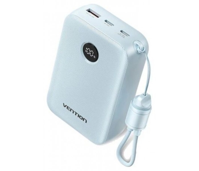 Powerbank 10000mAh Vention FHZL0/ 22.5W/ AzulPowerbank Vention 10000 mAh USB-C + Lightning + USB-A 22,5WAprobado por la aerolíneaSolución todo en unoCompacto y portátilDiseño de linternaLa batería externa Vention combina a la perfección tecnología moderna, funcionalidad y estética. Diseñada para qui..