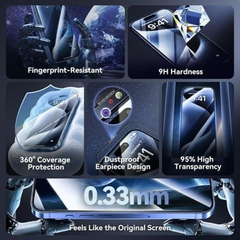 Pack de 2 Protectores de Pantalla de Cristal Templado Vention KUOTCA-30 para iPhone 15 Pro + Herramienta de Instalación AntipolvoPack de 2 Protectores de Pantalla de Cristal Templado Vention KUOTCA-30 para iPhone 15 Pro + Herramienta de Instalación AntipolvoPack de 2 Protectores de pantalla de vidri..
