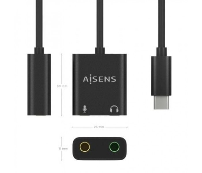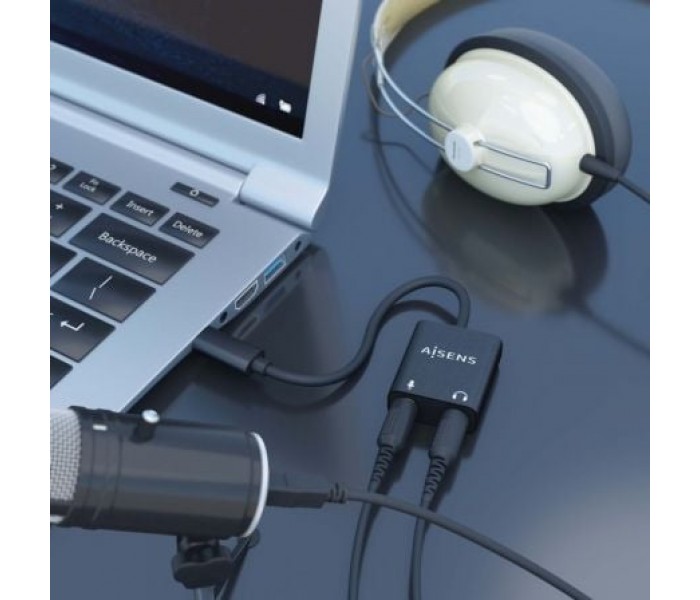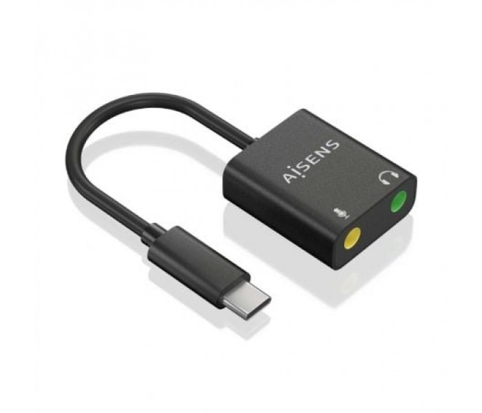 - AISENS - CONVERSOR USB-C A AUDIO 48KHz, USB-C/M-2xJACK 3.5/H, NEGRO, 10CM