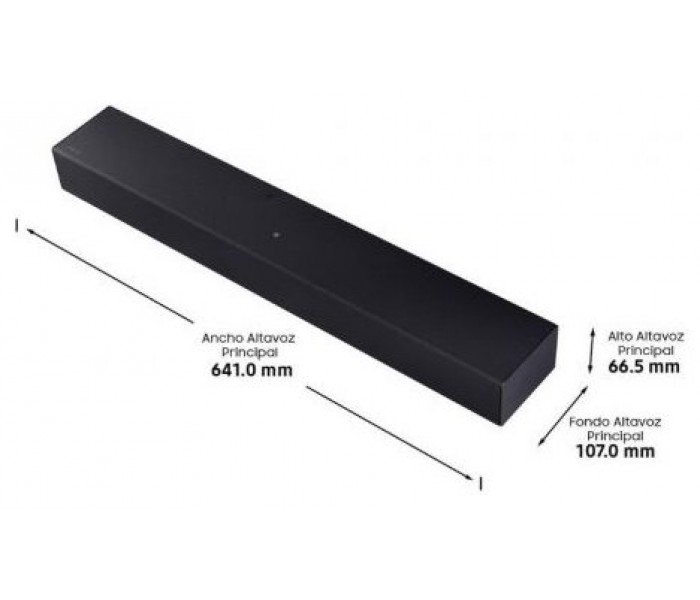 - Dimensiones barra de sonido: 641 × 66.5 × 107 mm