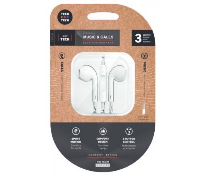 - Auriculares earTECH ergonómicos, sonido estéreo, con micrófono, controles de volumen y tercer botón multifunción.