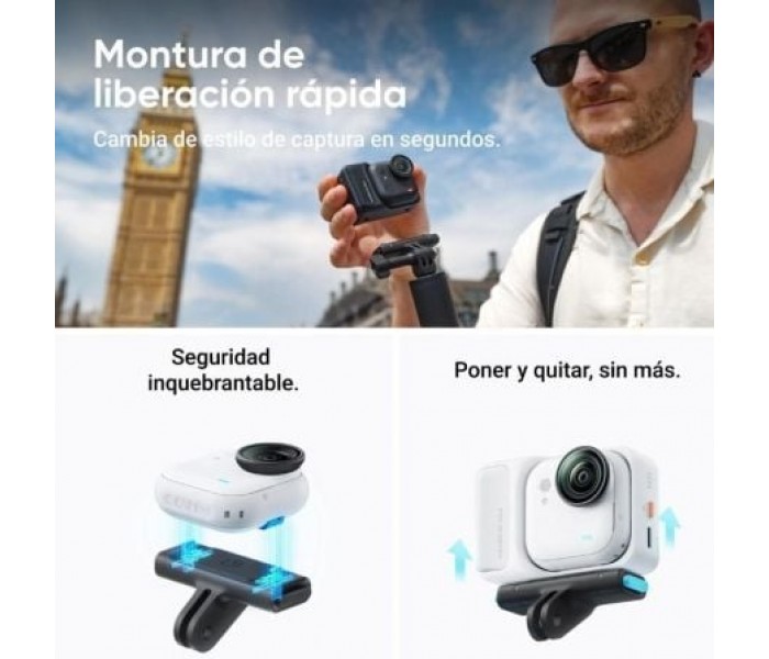 Cámara Digital Deportiva Insta360 GO Ultra Pack Creador/ 4K/ Ángulo de visión 360º/ NegraInsta360 GO UltraInfinitas formas de crear.El paquete creador incluye: 1x GO Ultra, 1x Protector de Lentes (preinstalado en la lente por defecto), 1x cordón de seguridad de liberación rápida, 1x Easy Clip magnét..