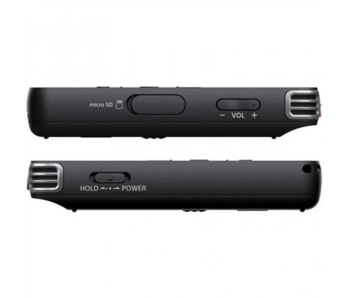 El ICD-PX470 cuenta con una memoria integrada de 4 GB, lo que equivale a un tiempo máximo de grabación de 59 horas y 35 minutos en MP3 estéreo a 128 kbps. Puede ampliar la capacidad de memoria con una tarjeta micro SD y obtener hasta 32 GB adicionales, lo que le permite grabar más de 536 horas (Micro SD 32 GB, MP3 a 128 kbps).