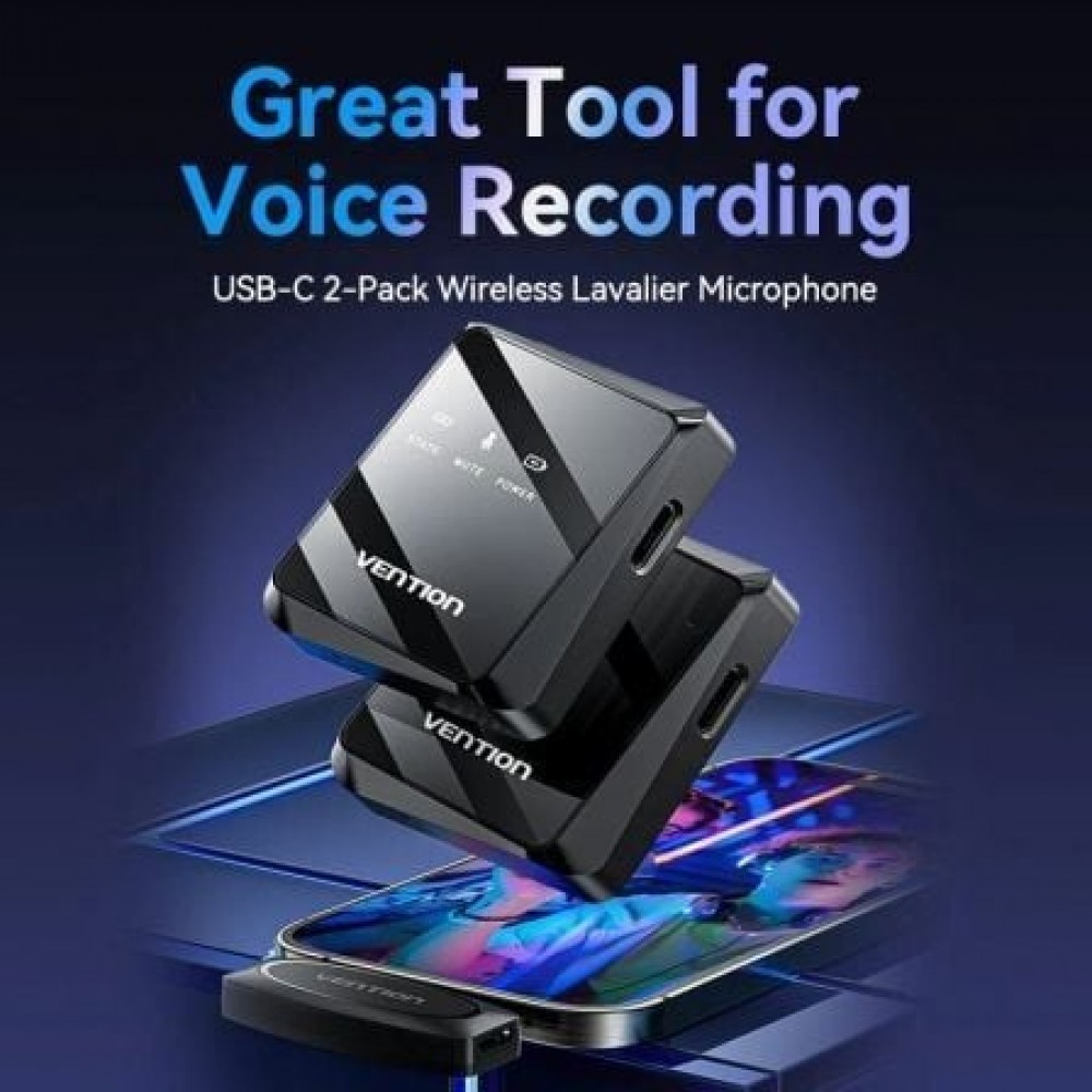 - Amplia compatibilidad: el sistema de micrófono Vention está diseñado para funcionar sin esfuerzo con una variedad de dispositivos USB-C, como teléfonos inteligentes y tabletas, lo que lo hace versátil y fácil de usar en diferentes escenarios.