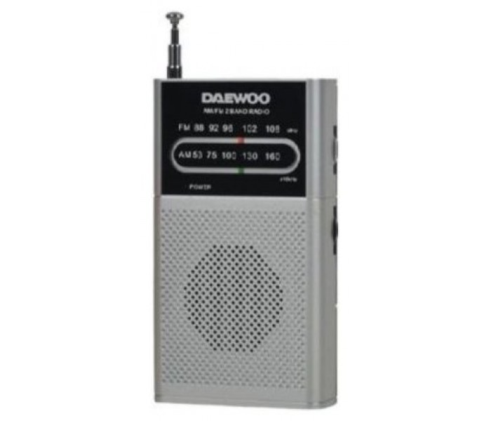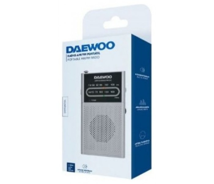 Radio Portátil Daewoo DW1008/ PlataRADIO PORTATIL CON ALTAVOZ DW1008RADIO ANALÓGICA AM/FMALTAVOZ INTEGRADOENTRADA JACK 3.5MMANTENA TELESCOPICAFUNCIONA CON PILAS (NO INCLUIDAS)FM 88-108 MHZAM 530-1600KHZ..