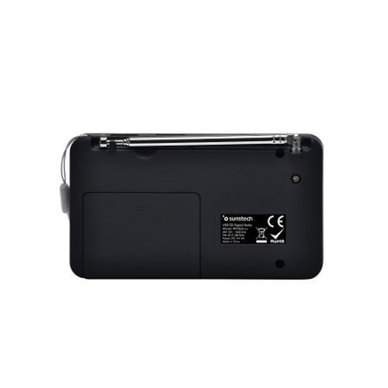 Radio portátil digital AM / FM súper compacta con puerto USB y ranura para tarjetas microSD / SD / MMC.