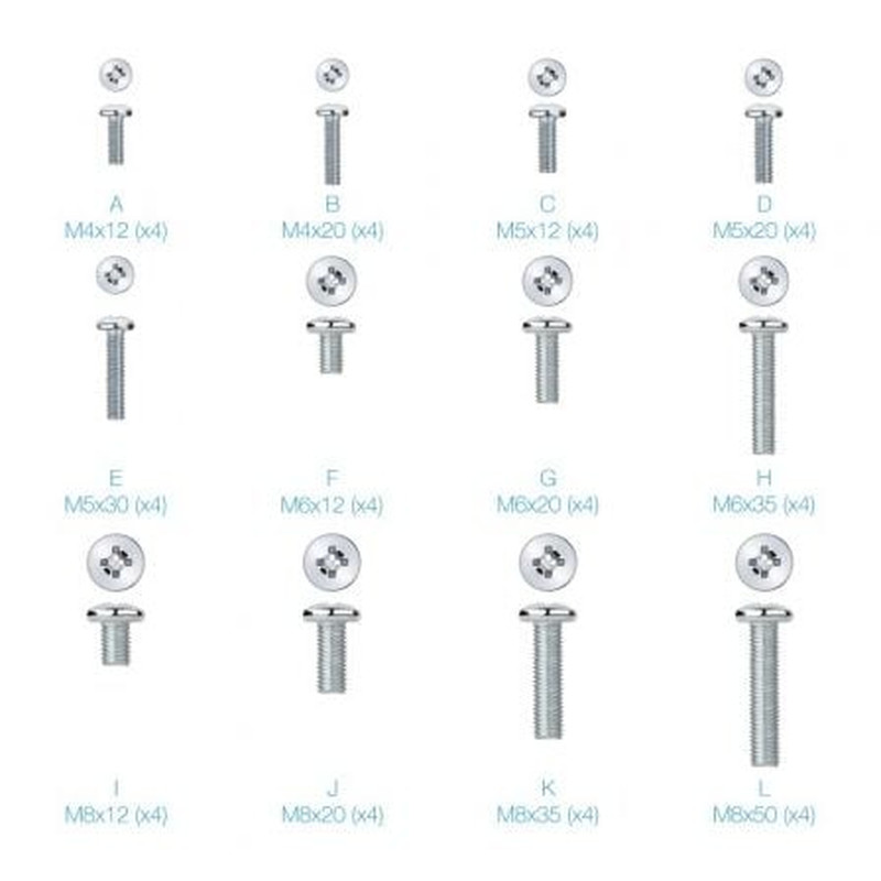 - 4 unidades de M4x12, 4 unidades de M4x20, 4 unidades de M5x12, 4 unidades de M5x20,