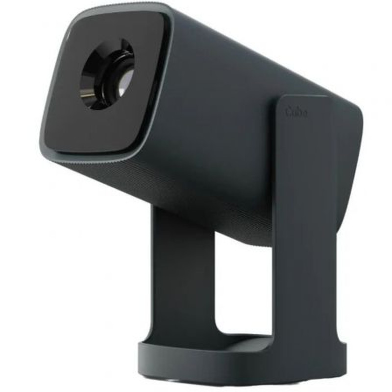 El exclusivo diseño Gimbal de 360° permite maniobrar libremente la lente en toda su extensión. Esto permite al proyector Cube 1 proyectar películas en una pared, en un ático inclinado o incluso en el techo, lo que favorece una visualización cómoda mientras se está tumbado. Este mecanismo también sirve para proteger la cámara (cuando está plegada) durante el transporte. Este diseño facilita la colocación de la montura sin necesidad de trípodes o almohadillas adicionales.