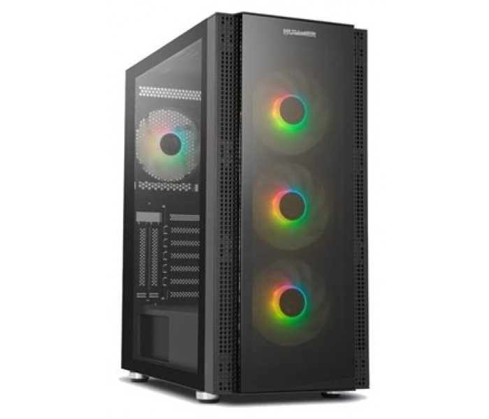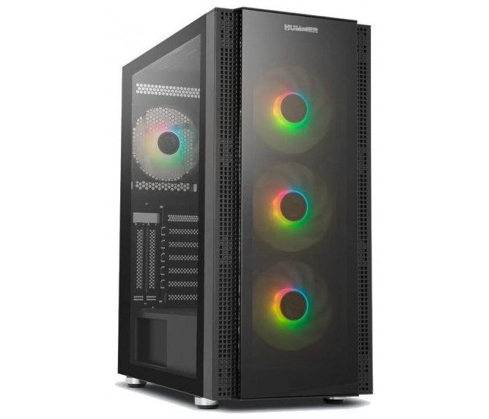 Otras Características | - Material: Chasis de acero SPCC 0.6 mm (interior negro) Panel lateral y frontal en cristal templado - Slots expansión: 7 - Color: Negro - Fuente de alimentación: Estándar ATX compatible (no incluida) Espacio - Cooler CPU: 163 mm (altura máxima) - VGA: 345 mm (longitud máxima) - PSU: 210 mm máximo - Cableado: 25 mm Dimensiones y peso - 215 x 482 x 410 mm - 6,2 Kg |