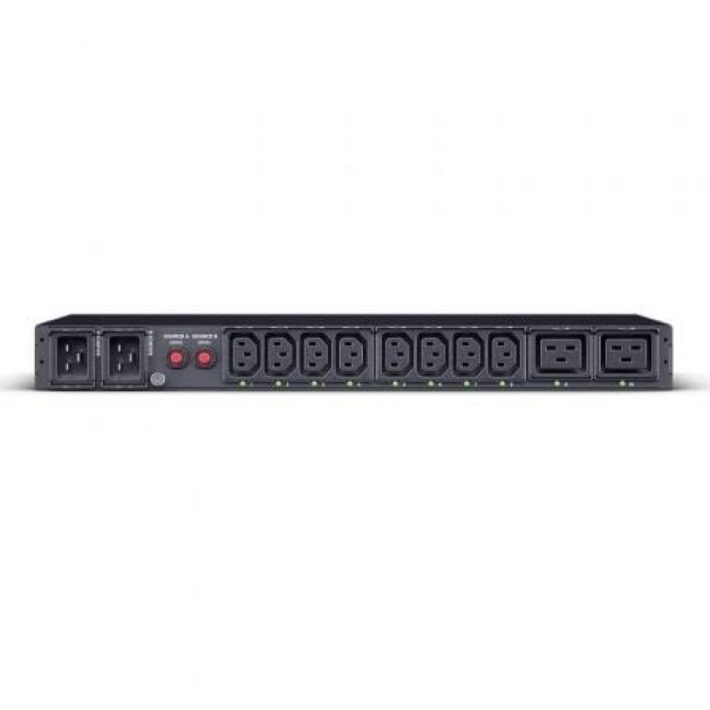CyberPower PDU44005 proporciona la salida de una unidad SAI, generador o energía eléctrica a múltiples dispositivos conectados en entornos de TI. Los cables de alimentación duales se pueden conectar a fuentes de alimentación separadas para proporcionar redundancia a los equipos conectados con un solo cable. Si la fuente de alimentación seleccionada excede los umbrales deseados o falla, la PDU ATS cambiará automáticamente a la otra fuente de alimentación dentro de los 10 ms (Tiempo de Detección de Falla de la fuente: 2-3 ms. Tiempo de transferencia de la fuente de alimentación: 2-7 ms) para garantizar un funcionamiento continuo. La unidad admite el control remoto de tomas individuales a través de la red, lo que permite a los administradores encender/apagar los dispositivos conectados desde cualquier ubicación.