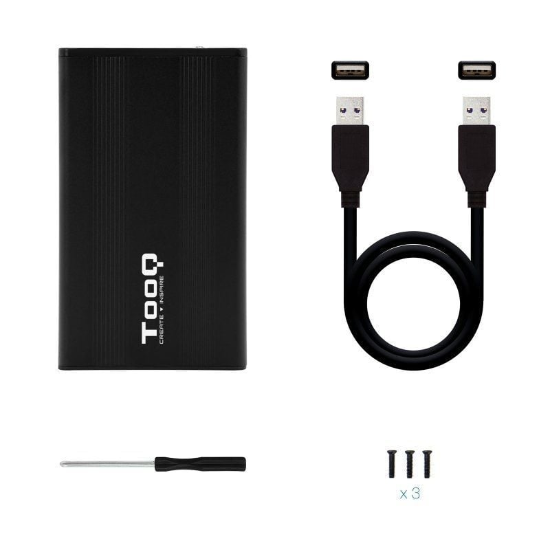 Caja Externa para Disco Duro de 2.5" TooQ TQE-2530B/ USB 3.1CaracterísticasCaja externa de aluminio para discos duros de 2,5" SATA I, II y III de hasta 9.5 mm de alto, ligera y de fácil instalación.Con conexión a través del puerto USB 3.0 tiene una velocidad de transferencia de hasta 5.0Gbps. Incluy..