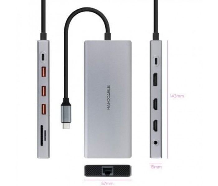 Docking USB Tipo-C Vention TPUH0/ 2xHDMI 4K/ 1xDisplayPort/ 3xUSB Tipo-C/ 5xUSB/ 1xRJ45/ 1xLector de Tarjetas/ 1xJack 3.5/ 1xUSB Tipo-C PD/ GrisVention Docking Station 15en1 USB-C TRRS/PD MST Aluminio Gris VerticalEspecificacionesMarcaVentionNombreEstación de acoplamiento USB-C MST 15 en 1Interfaz d..