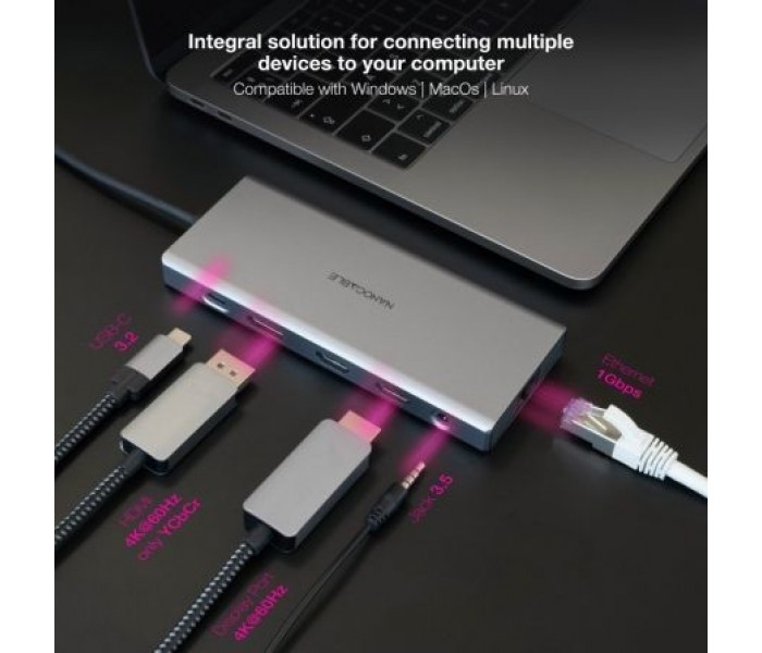 Conexión USB-C 3.2. con una velocidad de transferencia de datos de hasta 10 Gbps. Compatible con dispositivos USB-C como portátiles, tablets, smartphones, discos duros externos, memorias USB y otros periféricos.