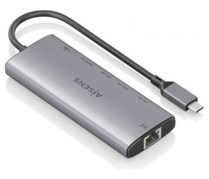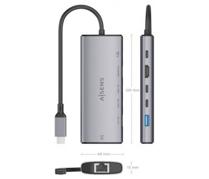 Docking USB Tipo-C Aisens ASUC-12P020-GR/ 2xHDMI 4K/ 3xUSB/ 1xUSB Tipo-C/ 1xRJ45/ 1xDisplayPort/ 1xLector Tarjetas/ 1xUSB Tipo-C PD/ GrisAISENS - USB-C Dock 12 en 1, 30 cm, GrisTipo: Docking station USB-C multifuncional 12 en 1Diseño: Compacto, ligero, con carcasa de aluminioFunciones clave:Expande ..