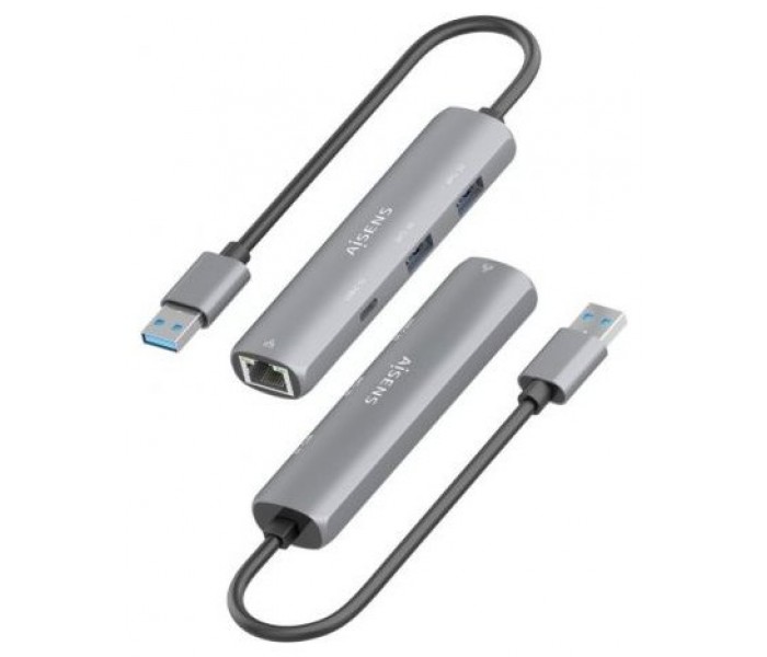 Hub USB Aisens ASUC-4P036-GR/ 2xUSB Tipo-C/ 1xUSB/ 1xRJ45/ GrisASUC-4P036-GR – USB3.0 Dock USB-A a Ethernet Gigabit + HUB 2xUSB-C+1xUSB-A, Gris, 15cmConversor USB-A a Gigabit ethernet, 2xUSB-C 5G, 1xUSB-A 5GLa solución más rápida de USB 3.0 a Gigabit ethernet que garantiza gran velocidad de transfer..