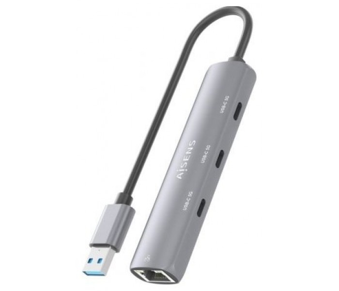 Hub USB Aisens ASUC-4P036-GR/ 2xUSB Tipo-C/ 1xUSB/ 1xRJ45/ GrisASUC-4P036-GR – USB3.0 Dock USB-A a Ethernet Gigabit + HUB 2xUSB-C+1xUSB-A, Gris, 15cmConversor USB-A a Gigabit ethernet, 2xUSB-C 5G, 1xUSB-A 5GLa solución más rápida de USB 3.0 a Gigabit ethernet que garantiza gran velocidad de transfer..