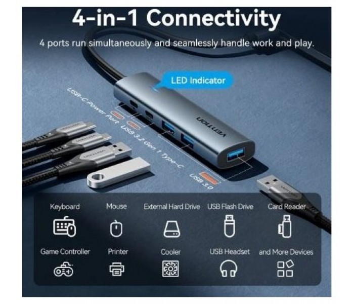 Hub USB 3.0 Vention TGFSB/ 3xUSB/ 1xRJ45/ 1xUSB Tipo-C PD/ AzulVention USB 3.0 a USB 3.0 x 3/RJ45/USB-C HubAmplíe su estación de trabajo con el concentrador USB 3.0 5 en 1 de Vention. Mejore sus niveles de productividad y organice su espacio de trabajo de manera eficiente con el elegante y extraordi..
