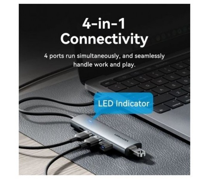 Vention HUB USB-C a USB3.0x4/USB-C 0.15m TGZHB Aluminio