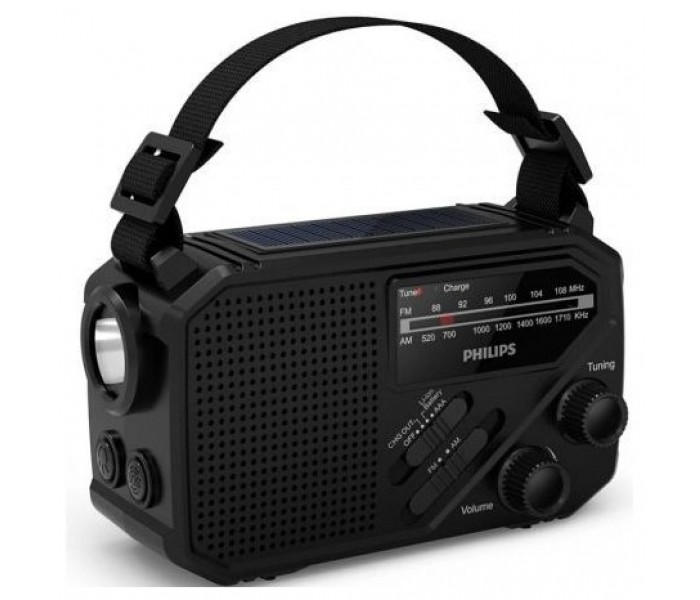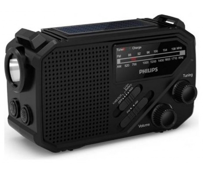 ¡No te quedes nunca sin energía! Siempre tendrás una carga de reserva con los paneles solares de la parte superior de la radio o accionando la manivela. La radio también admite 3 pilas AAA (no incluidas), mientras que el puerto USB-A permite cargar otros dispositivos en caso de emergencia.