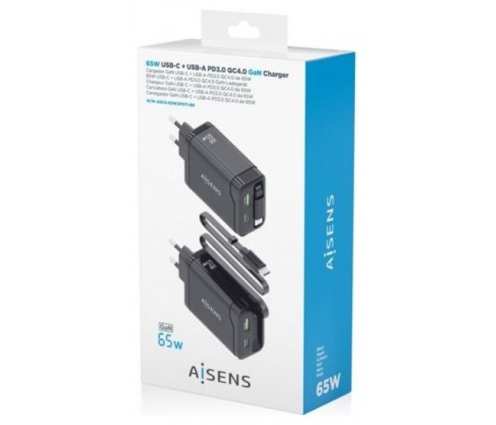 - Contenido del paquete: 1 x Cargador GaN 65W, 1 x Manual de usuario multi-idioma